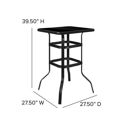 3 Piece Outdoor Glass Bar Patio Table Set with 2 Barstools