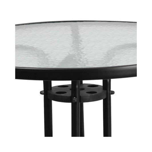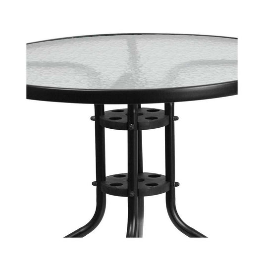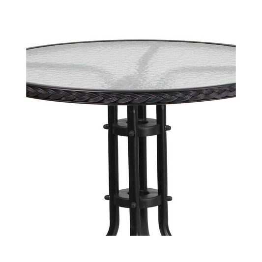 28'' Round Tempered Glass Metal Table with Black Rattan Edging