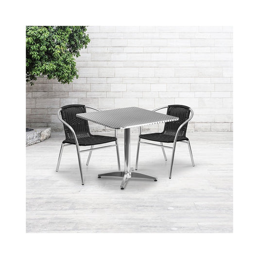 31.5'' Square Aluminum Indoor-Outdoor Table Set with 2 Black Rattan Chairs