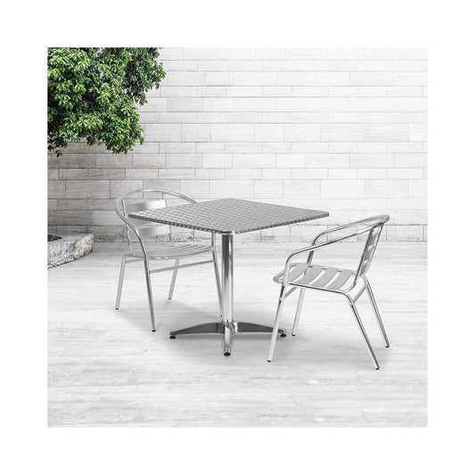 31.5'' Square Aluminum Indoor-Outdoor Table Set with 2 Slat Back Chairs