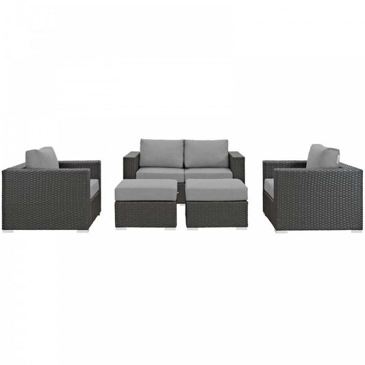 Sojourn 5 Piece Outdoor Patio Sunbrella Sectional Set, Canvas Gray, EEI-1879-CHC-GRY-SET