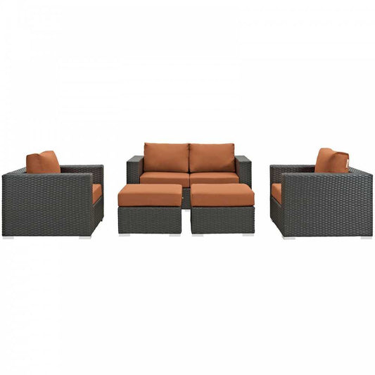 Sojourn 5 Piece Outdoor Patio Sunbrella Sectional Set, Canvas Tuscan, EEI-1882-CHC-TUS-SET