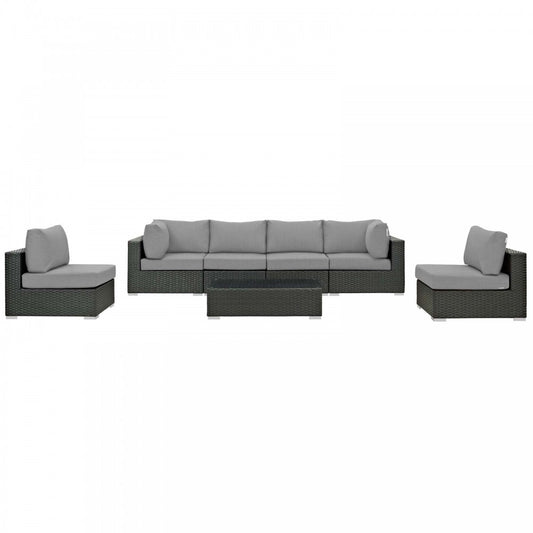 Sojourn 7 Piece Outdoor Patio Sunbrella Sectional Set, Canvas Gray, EEI-1883-CHC-GRY-SET