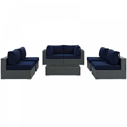 Sojourn 7 Piece Outdoor Patio Sunbrella Sectional Set, Canvas Navy, EEI-1883-CHC-NAV-SET