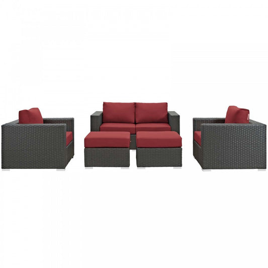 Sojourn 5 Piece Outdoor Patio Sunbrella Sectional Set, Canvas Red, EEI-1882-CHC-RED-SET