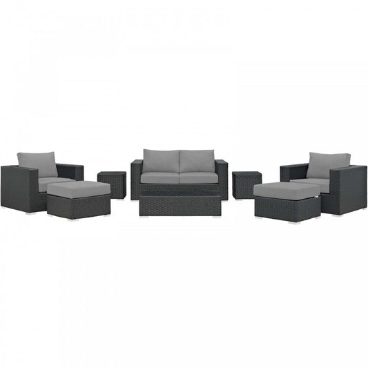Sojourn 8 Piece Outdoor Patio Sunbrella Sectional Set, Canvas Gray