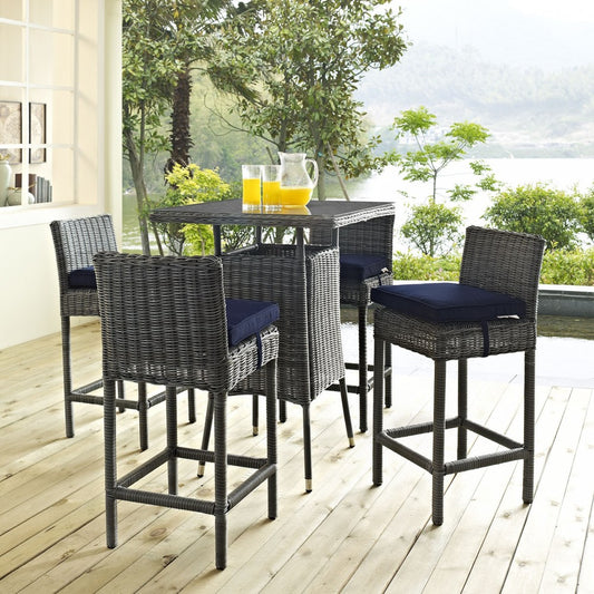 Summon 5 Piece Outdoor Patio Sunbrella Pub Set, Canvas Navy, EEI-1971-GRY-NAV-SET