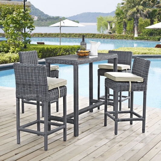 Summon 5 Piece Outdoor Patio Sunbrella Pub Set, Canvas Tuscan, EEI-1972-GRY-TUS-SET