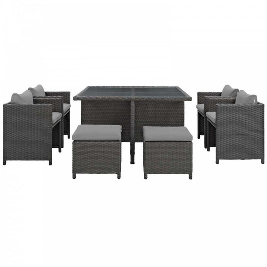 Sojourn 9 Piece Outdoor Patio Sunbrella Dining Set, Canvas Gray, EEI-1946-CHC-GRY-SET
