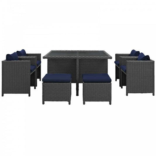 Sojourn 9 Piece Outdoor Patio Sunbrella Dining Set, Canvas Navy, EEI-1946-CHC-NAV-SET