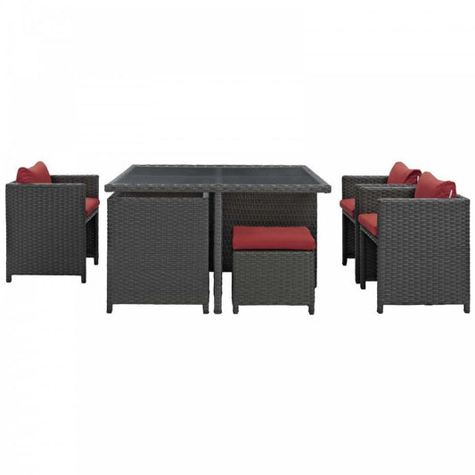 Sojourn 9 Piece Outdoor Patio Sunbrella Dining Set, Canvas Red, EEI-1946-CHC-RED-SET