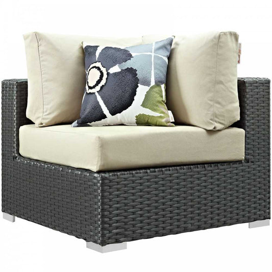 Sojourn 7 Piece Outdoor Patio Sunbrella Sectional Set, Canvas Antique Beige, EEI-2374-CHC-BEI-SET