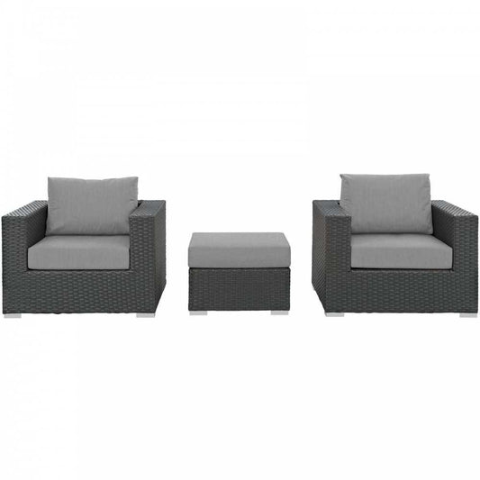 Sojourn 3 Piece Outdoor Patio Sunbrella Sectional Set, Canvas Gray, EEI-1889-CHC-GRY-SET