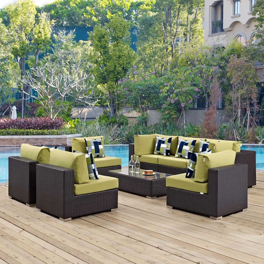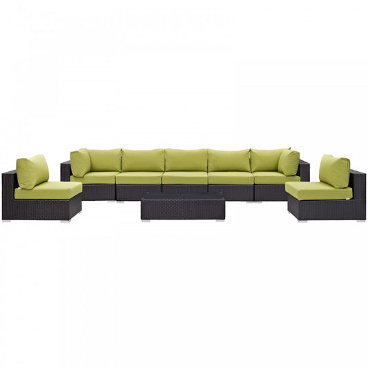 Convene 8 Piece Outdoor Patio Sectional Set, Espresso Peridot, EEI-2206-EXP-PER-SET