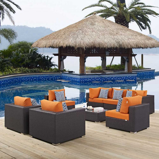 Convene 8 Piece Outdoor Patio Sectional Set, Espresso Orange, EEI-2206-EXP-ORA-SET