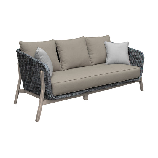 Portals Outdoor 4 Piece Sofa set in Matte Sand Finish with Natural Teak Wood