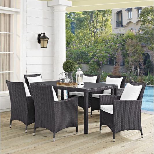 Convene 7 Piece Outdoor Patio Dining Set, Espresso White, EEI-2241-EXP-WHI-SET