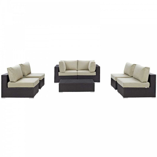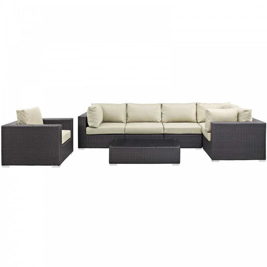 Convene 7 Piece Outdoor Patio Sectional Set, Espresso Beige, EEI-2200-EXP-BEI-SET