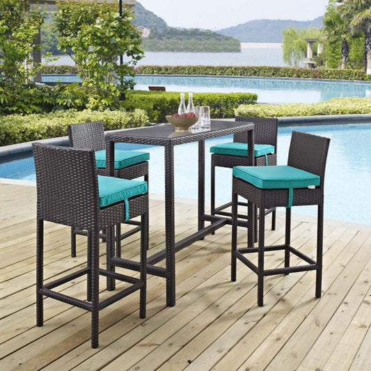 Convene 5 Piece Outdoor Patio Pub Set, Espresso Turquoise, EEI-1963-EXP-TRQ-SET