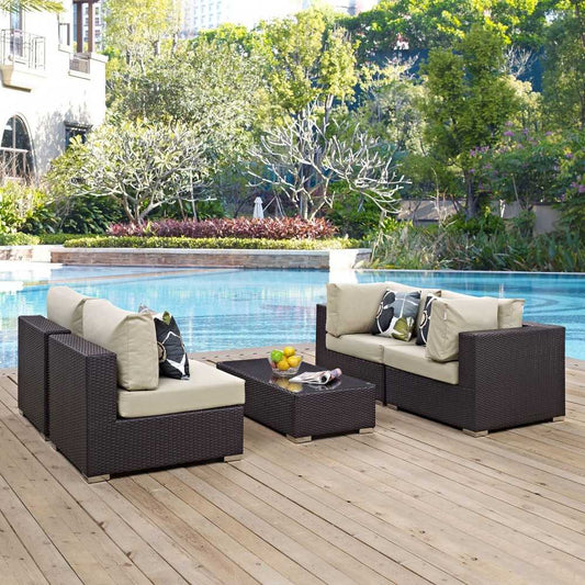 Convene 5 Piece Outdoor Patio Sectional Set, Espresso Beige, EEI-2172-EXP-BEI-SET