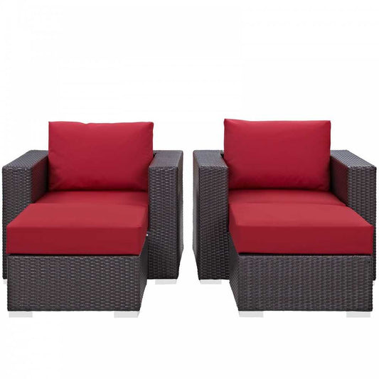 Convene 4 Piece Outdoor Patio Sectional Set, Espresso Red