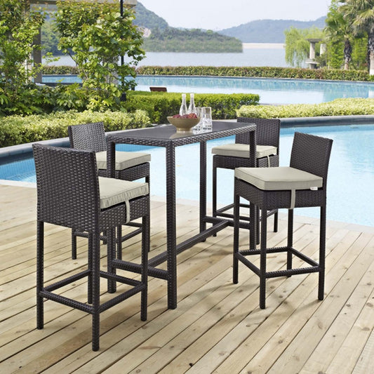 Convene 5 Piece Outdoor Patio Pub Set, Espresso Beige, EEI-1963-EXP-BEI-SET