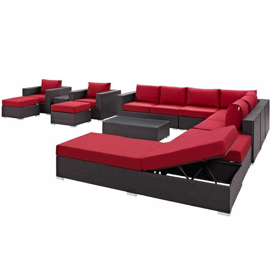 Convene 12 Piece Outdoor Patio Sectional Set, Espresso Red