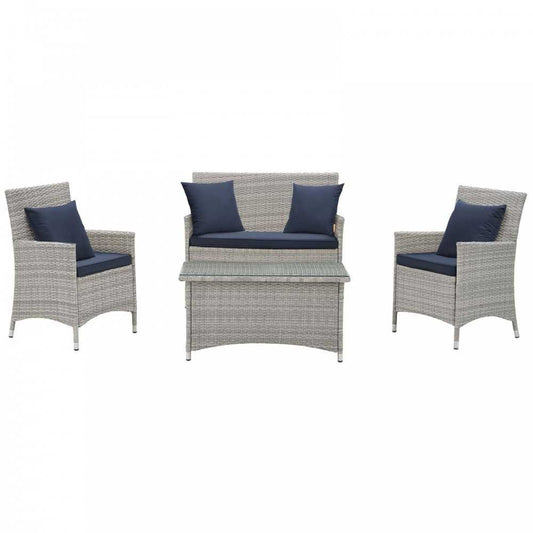Bridge 4 Piece Outdoor Patio Patio Conversation Set with Pillow Set, Light Gray Navy