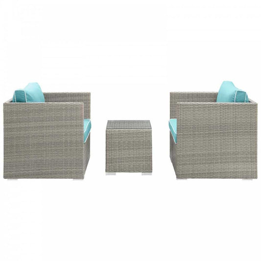 Repose 3 Piece Outdoor Patio Sectional Set, Light Gray Turquoise