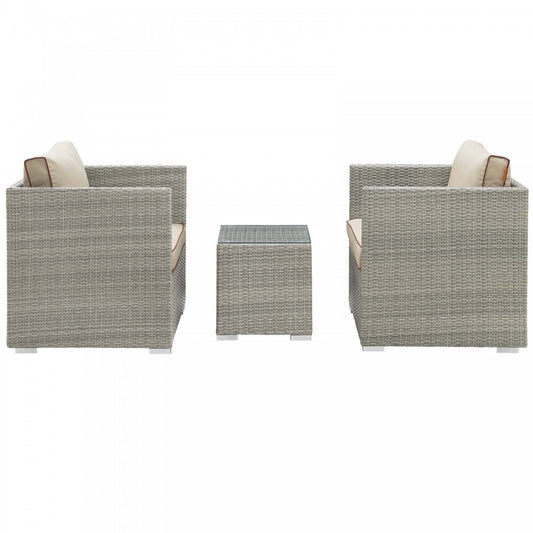 Repose 3 Piece Outdoor Patio Sectional Set, Light Gray White