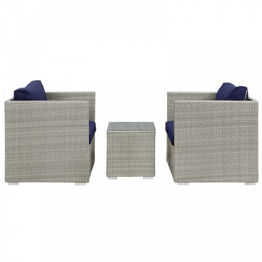 Repose 3 Piece Outdoor Patio Sectional Set, Light Gray Navy