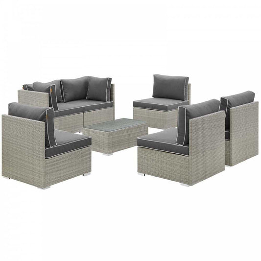 Repose 7 Piece Outdoor Patio Sectional Set, Light Gray Charcoal, EEI-3004-LGR-CHA-SET