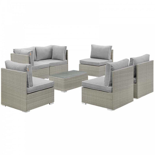 Repose 7 Piece Outdoor Patio Sectional Set, Light Gray Gray, EEI-3004-LGR-GRY-SET