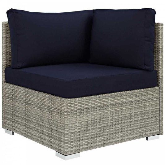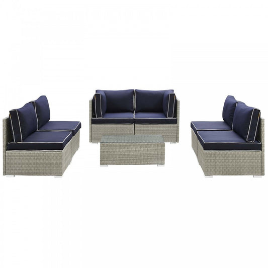 Repose 7 Piece Outdoor Patio Sectional Set, Light Gray Navy, EEI-3004-LGR-NAV-SET