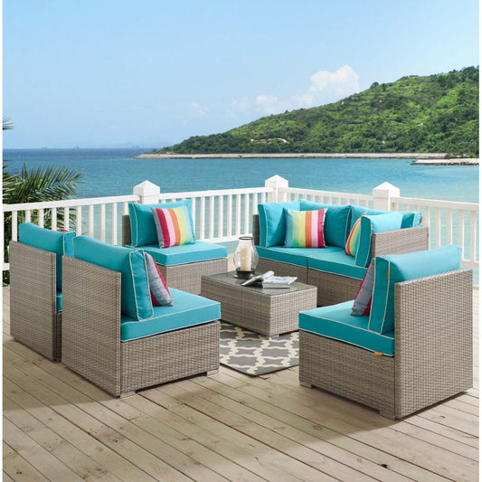 Repose 7 Piece Outdoor Patio Sectional Set, Light Gray Turquoise, EEI-3004-LGR-TRQ-SET