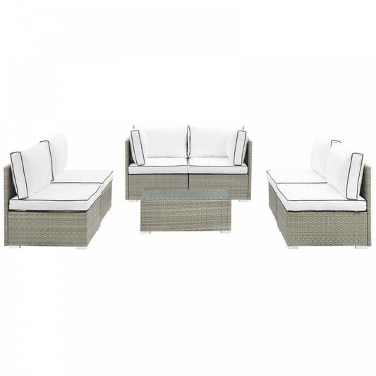 Repose 7 Piece Outdoor Patio Sectional Set, Light Gray White, EEI-3004-LGR-WHI-SET