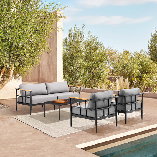 Portals Outdoor 5 Piece Black Aluminum & Teak Wood Dining Set