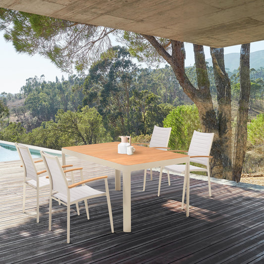 Portals Outdoor 5 Piece Coral Sand Aluminum & Teak Wood Dining Set