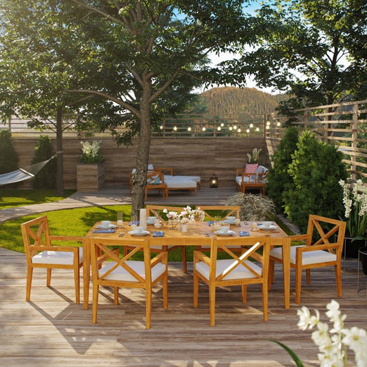 Northlake 7 Piece Outdoor Patio Premium Grade A Teak Wood Set, Natural White, EEI-3625-NAT-WHI-SET