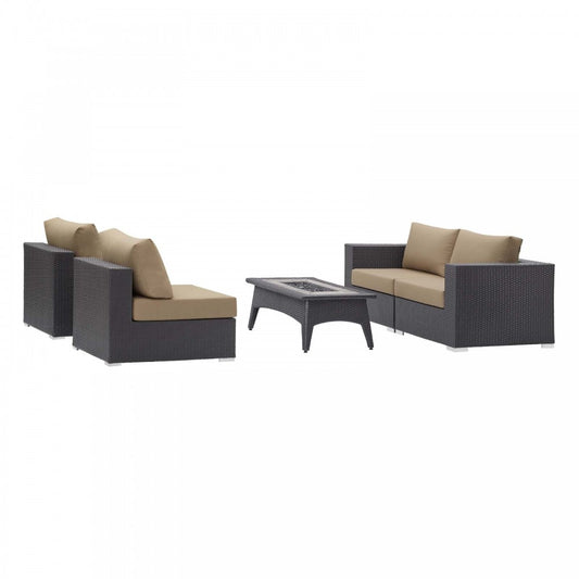 Convene 5 Piece Set Outdoor Patio with Fire Pit, Espresso Mocha, EEI-3726-EXP-MOC-SET