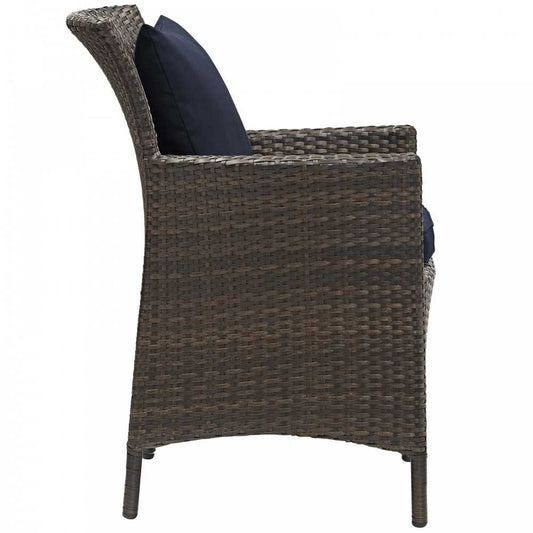 Conduit 5 Piece Outdoor Patio Wicker Rattan Set, Brown Navy, EEI-3893-BRN-NAV-SET