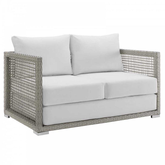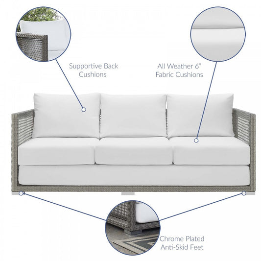 Aura 3 Piece Outdoor Patio Wicker Rattan Set, Gray White, EEI-3595-GRY-WHI-SET