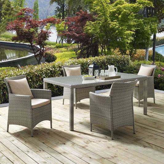 Conduit 5 Piece Outdoor Patio Wicker Rattan Dining Set, Light Gray Beige