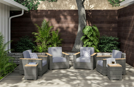 Boca Raton Outdoor Side Table Pair and Four Arm Chairs by homestyles