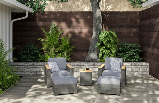 Boca Raton Outdoor Side Table, Arm Chair Pair and Two Ottomans by homestyles