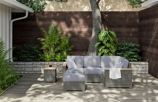 Boca Raton Outdoor 4 Seat Sectional, Ottoman and Side Table by homestyles