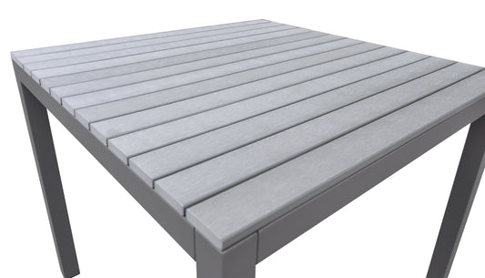 Bistro Patio Dining Table in Grey Powder Coated Finish with Grey Wood Top
