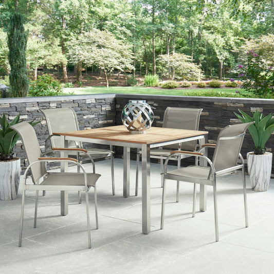 Solana Rectangular Aluminum Dining Table in Cosmos Grey Finish with Wood Top