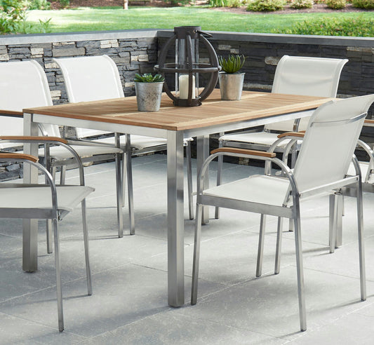 Royal White Aluminum and Teak Outdoor Dining Table with Stone Top