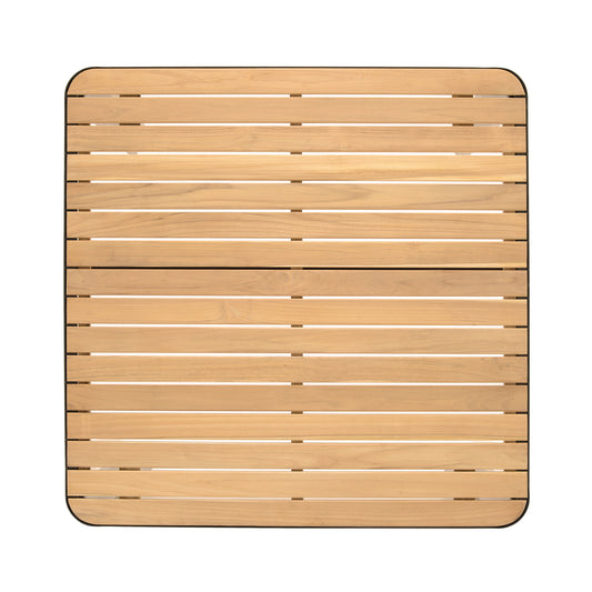 Portals Outdoor Square Bar Table in Natural Teak Wood Top and Black Frame